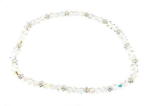 Made with 4mm Swarovski(tm) crystal beads & silver tone Heishi beads, strung on easy-to-wear elastic.. Measures 9".