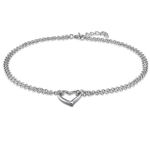 This lovely anklet with a heart attached is made of fine sterling silver, plated with rhodium, and stamped with 925 quality mark. Anklet length size is 9 inch with 1 inch extension. Fastens with spring ring clasp. Berricle.com style number #a008.