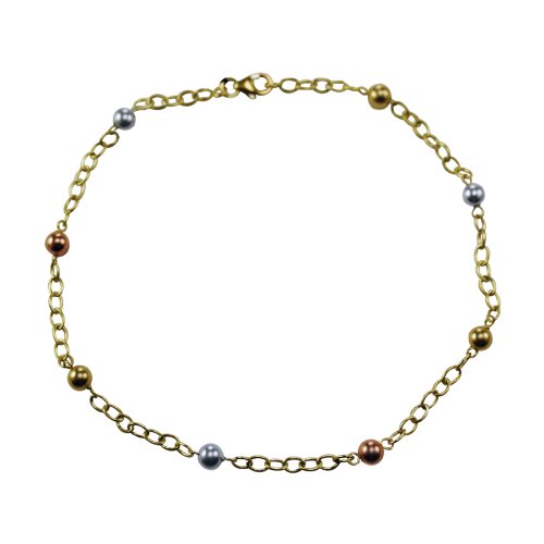 Bonded 14k Tri-Color Gold and Silver Beaded Station Anklet
