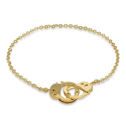 This unique handcuffs anklet is gold toned. Anklet length size is 9 1/2 inch. Fastens with handcuff clasp. Berricle.com style number #a016-g.