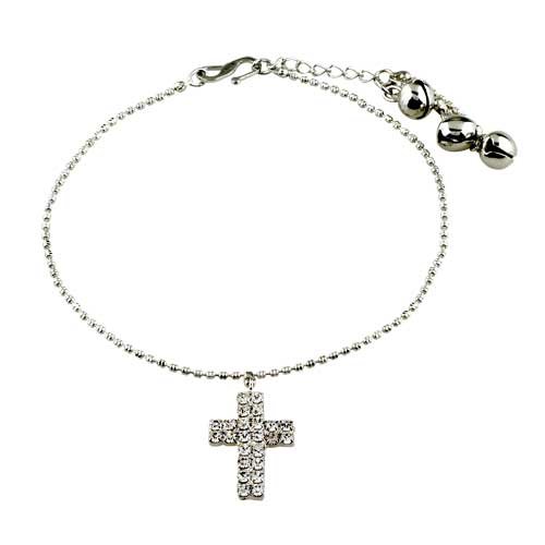 Shine like the star you are. A singular star station encrusted with marquise, clear simulated diamonds glistens on this dreamy goldtone ankle bracelet. Silver cross shape ankle bracelet whether you are wearing this anklet on a day at the beach or out on a night on the town, It will bring you a new experience.