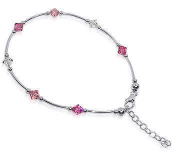 Sterling Silver Anklet made with Pink and Clear Genuine Swarovksi Crystals. Length of this Anklet can be adjusted.