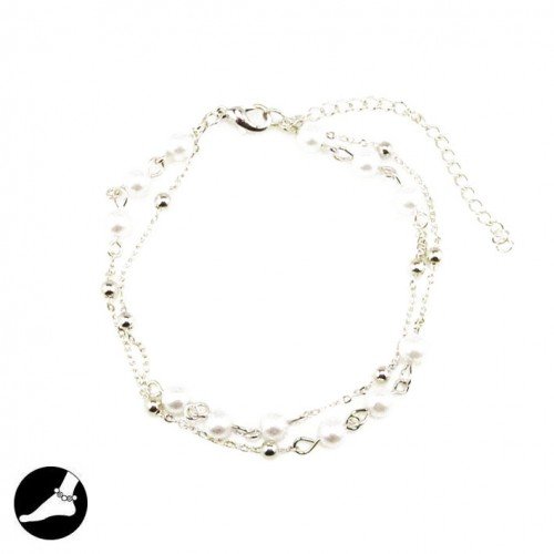 SG Paris WOMEN ANKLET CHAIN ANKLET CHAIN 2 ROWS 20CM+EXT RHODIUM CREAM PEARL CRYSTAL METAL/ENAMEL/STRASS