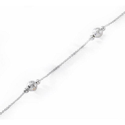 Signature rollo anklet is 10'' in length, diamond cut, and tarnish-free. The sterling silver design is interrupted regulary with silver beads and orbs.