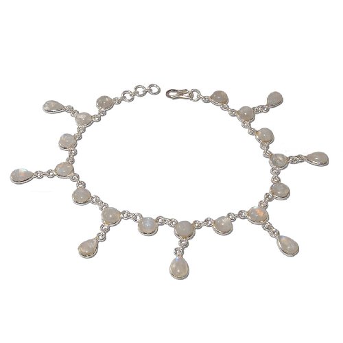 Sterling Silver Anklet Pair Rainbow Gemstone 9.5 Inches