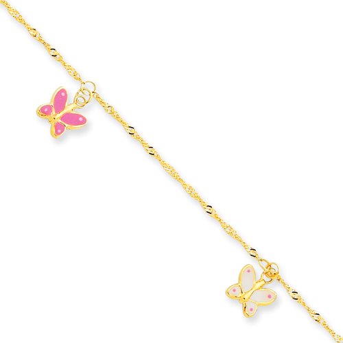 14k Adjustable Enameled Butterfly Anklet14k Yellow goldDiamond-cutEnamelSpring RingAdjustableWeight: 1.45 GMThis product comes with a FREE Gift Box