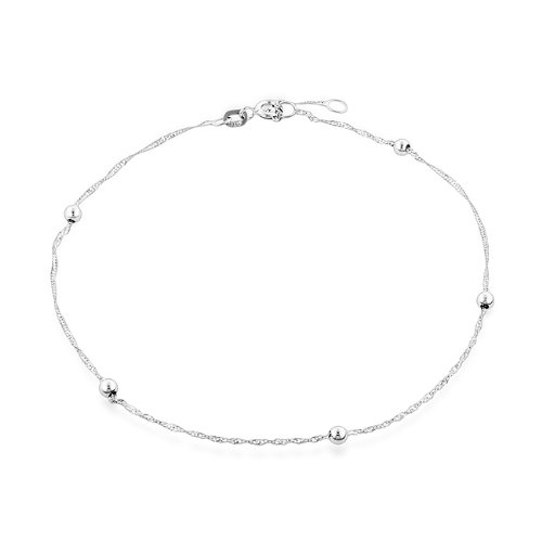 Adjustable Beaded Singapore Link Station Anklet in 14K White Gold - 10"